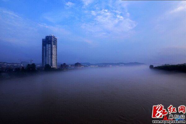 7月17日傍晚,洪水退后的錦江河面云霧升騰,城市建筑有如坐落在仙境一般,過往群眾紛紛為這難得一遇的奇觀而驚嘆。