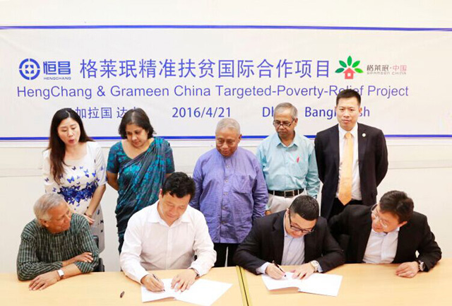 2016年4月21日,恒昌公司與格萊珉有限公司在孟加拉國格萊珉銀行總部舉行“恒昌-格萊珉精準扶貧國際合作項目”簽約儀式。穆罕默德·尤努斯博士,北京市君邦律師事務所創(chuàng)始合伙人李繼泉律師現(xiàn)場見證了簽約儀式,恒昌公司創(chuàng)始人、CEO秦洪濤與格萊珉中國有限公司總裁高戰(zhàn)代表雙方共同簽署了此次協(xié)議,項目計劃于當年6月正式啟動,首期計劃建立3個網點。