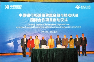 2016年11月,中原銀行行長王炯率團訪問孟加拉國,并與格萊珉有限公司簽署合作備忘錄。2017年2月28日,中原銀行格萊珉普惠金融與精準扶貧國際合作項目簽約暨啟動儀式在鄭州舉行,確定在蘭考、盧氏、嵩縣試點。蘭考率先開展精準扶貧項目試點,并于同年11月啟動“1+3”模式,即“一個區(qū)域辦公室+三個分部支行”。后來蘭考縣格萊珉項目的合作方已由中原銀行轉為中國建設銀行河南省分行。2019年9月,格萊珉與中國建設銀行河南省分行簽署協(xié)議,分別在河南開封和河南蘭考設立兩個分部,開展婦女創(chuàng)業(yè)貸款試點。